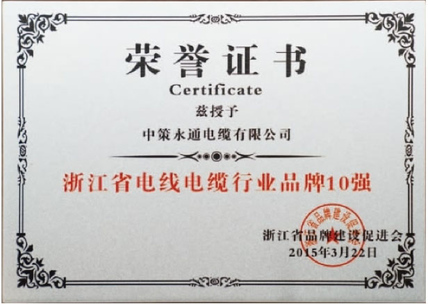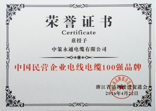 公司為浙江省電線電纜行業(yè)品牌10強(qiáng),中國民營企業(yè)電線電纜100強(qiáng)品牌,并獲得國家專精特新小巨人企業(yè)、國家高新技術(shù)企業(yè)、省科技型中小企業(yè)、省專精特新中小企業(yè)、區(qū)政府質(zhì)量獎、浙江制造“品”字標(biāo)認(rèn)證等多項(xiàng)榮譽(yù)。中策永通電纜有限公司生產(chǎn)設(shè)備精湛,技術(shù)力量雄厚,加工工藝先進(jìn),檢測工序齊全,質(zhì)量體系完善,售后服務(wù)周到。以專業(yè)和品質(zhì)為客戶提供優(yōu)質(zhì)的產(chǎn)品與服務(wù),不斷在產(chǎn)品多元化、效益規(guī)模化、技術(shù)高新化、體制現(xiàn)代化中求突破,繼續(xù)擴(kuò)大和保持在電線電纜領(lǐng)域的引領(lǐng)地位。